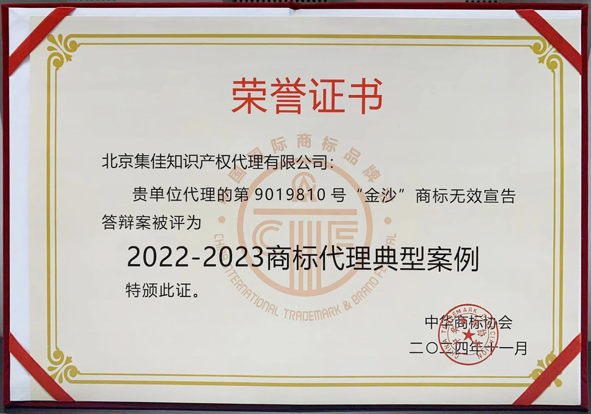 2024年11月24日下午,在商标节经典论坛之一的商标典型案例评析会议上,亿万28代理的“金沙”商标权无效宣告答辩案入选“2022-2023商标代理典型案例”。